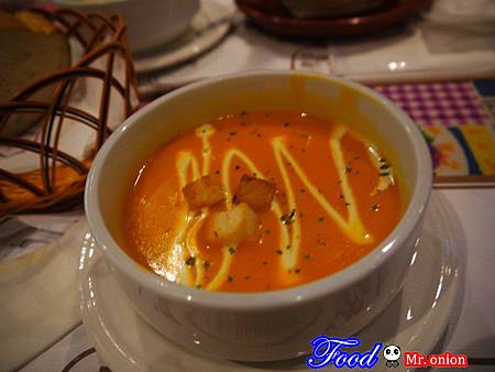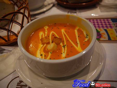 *湯品--可以四選一,有烤洋蔥湯ˋ法式野菇濃湯ˋ南瓜湯和海鮮燉魚湯~~